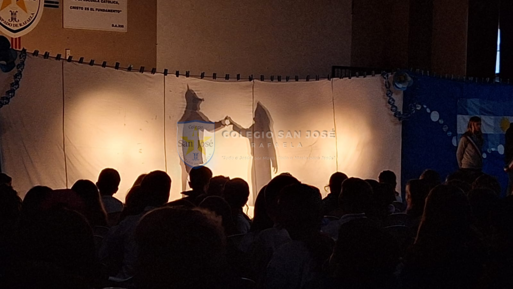 La parte central del acto estuvo a cargo de alumnos de 1er grado 6to A en el turno mañana y de 1er grado B y C y de 2do B. Se inició con un teatro de sombras, una representación artística que transportó al público a la vida de San Martín. Desde su infancia en Yapeyú hasta sus últimos días en Europa, cada escena fue acompañada por una narración conmovedora que destacó los momentos más importantes de su trayectoria. Los espectadores quedaron cautivados por la historia del Libertador.