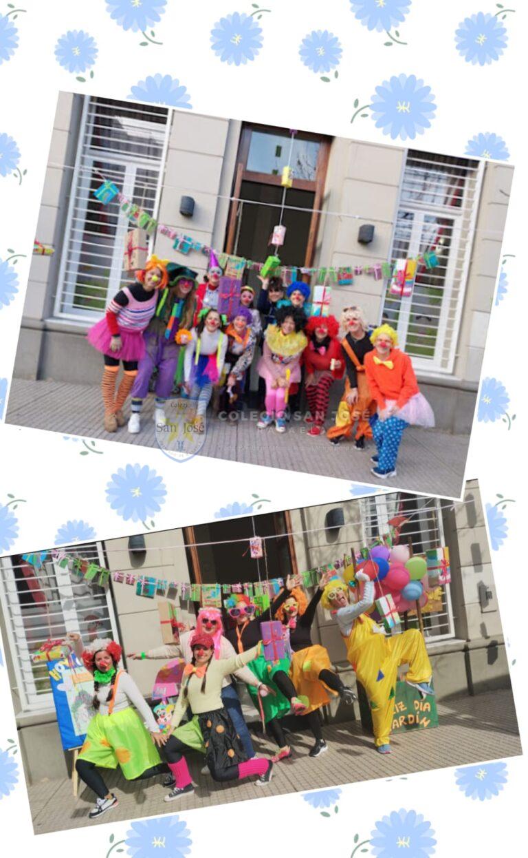 El jardín se vistió de sorpresas y regalos para agasajar a nuestro querido jardín San José con la murga de los colores, arte, malabares, historias, sonrisas y mucha alegría.