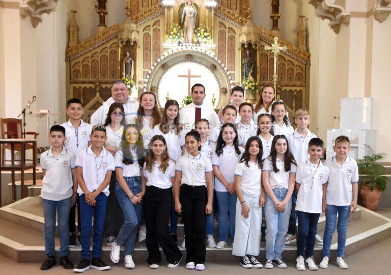 Con gran alegría en el corazón, queremos contarles que los alumnos y alumnas de quinto grado recibieron a Jesús Eucaristía por primera vez el sábado 29 de octubre en la Catedral San Rafael.