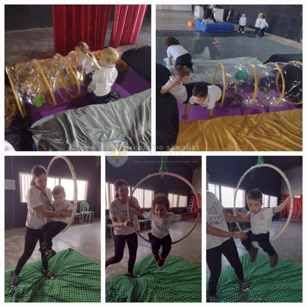 Las salas de 3, 4 y 5 años de la sección «C», del turno tarde, en el mes de mayo comenzaron asistir a las clases circenses. Los niños descubrieron las posibilidades de movimiento del cuerpo, con o sin objetos.