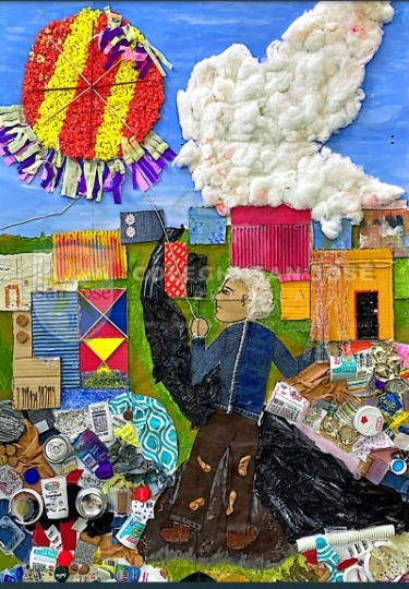 Atendiendo a la obra del pintor, los alumnos reprodujeron e inventaron situaciones similares usando su misma técnica, el Collage con la utilización de elementos de descarte.