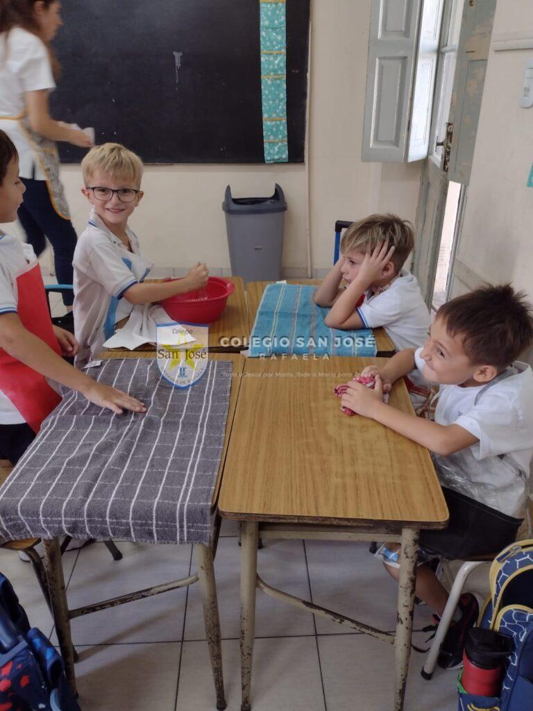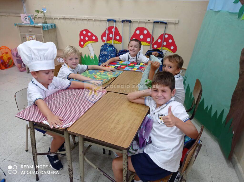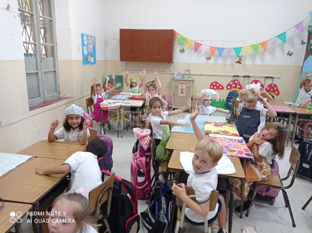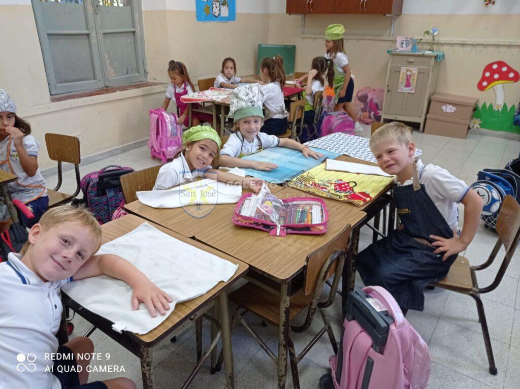 Con alegría comenzamos Primer Grado… Durante los primeros días junto a nuestro amigo lobo, descubrimos el país de los cuentos: nos conocimos, recorrimos la escuela, cocinamos una torta de manzana, trabajamos con las vocales y los números…