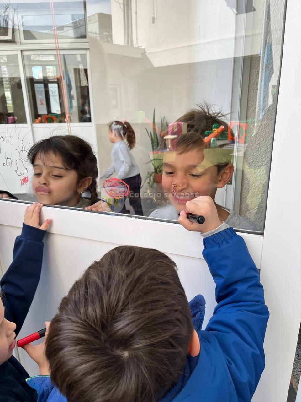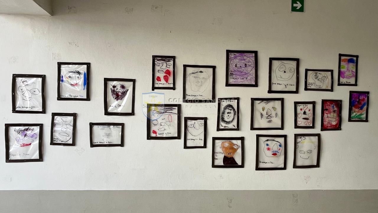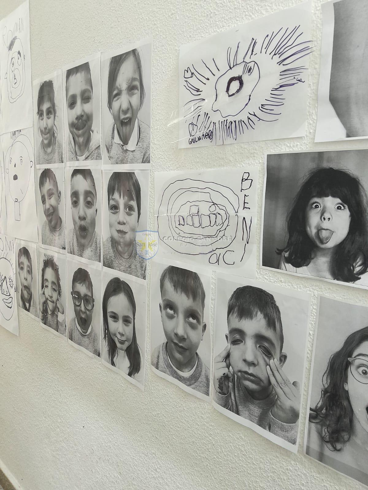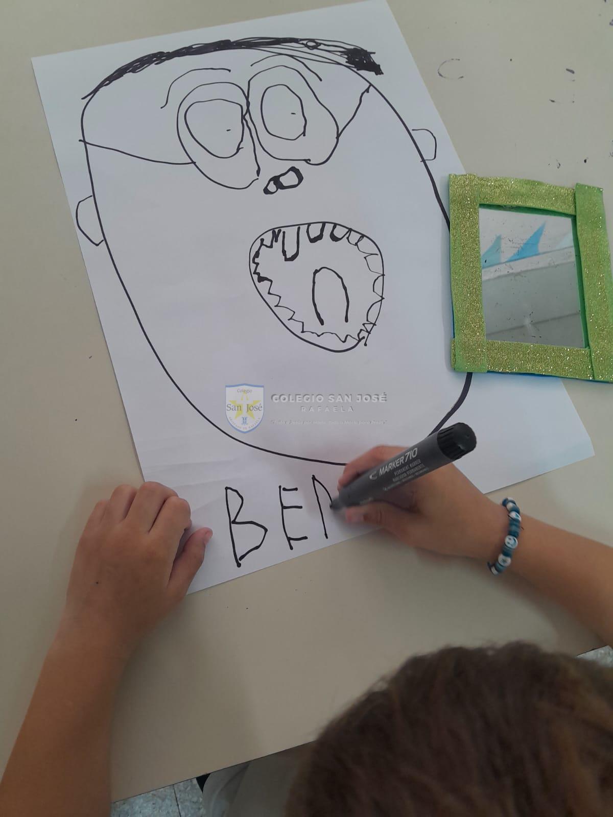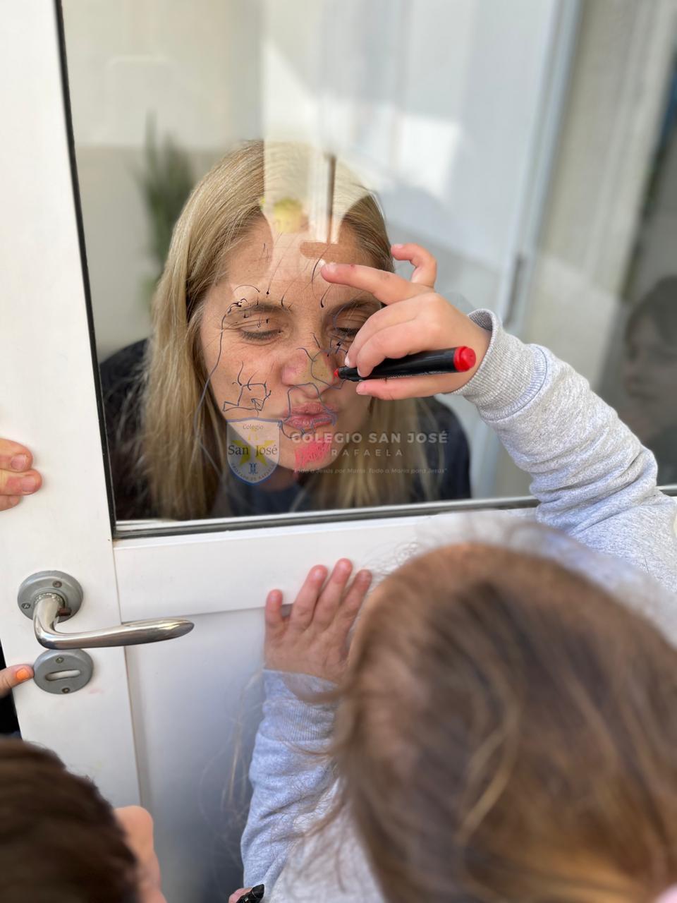 Las salas de 5 años se sumergieron en una propuesta que exploró el rostro como territorio de expresión, identidad y comunicación. A través del juego con las vocales y la observación frente al espejo, los niños descubrieron cómo se transforma la cara al hablar, reír o sorprenderse. Cada uno dibujó con atención las distintas partes del rostro —ojos, cejas, nariz, boca y forma de la cara— observando sus propios gestos y rasgos con detalle.