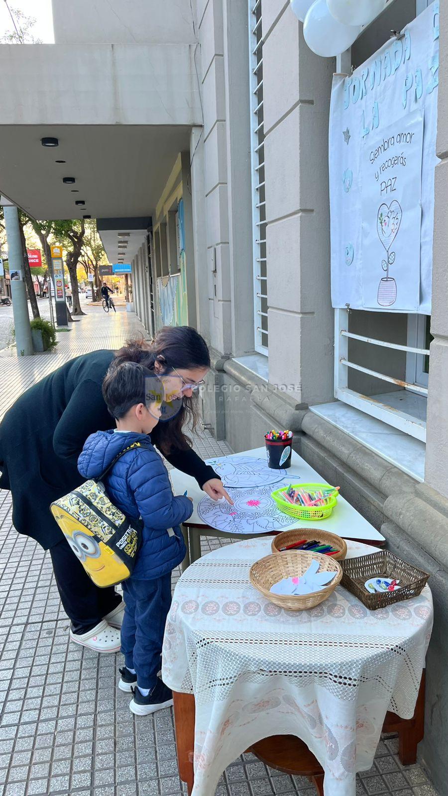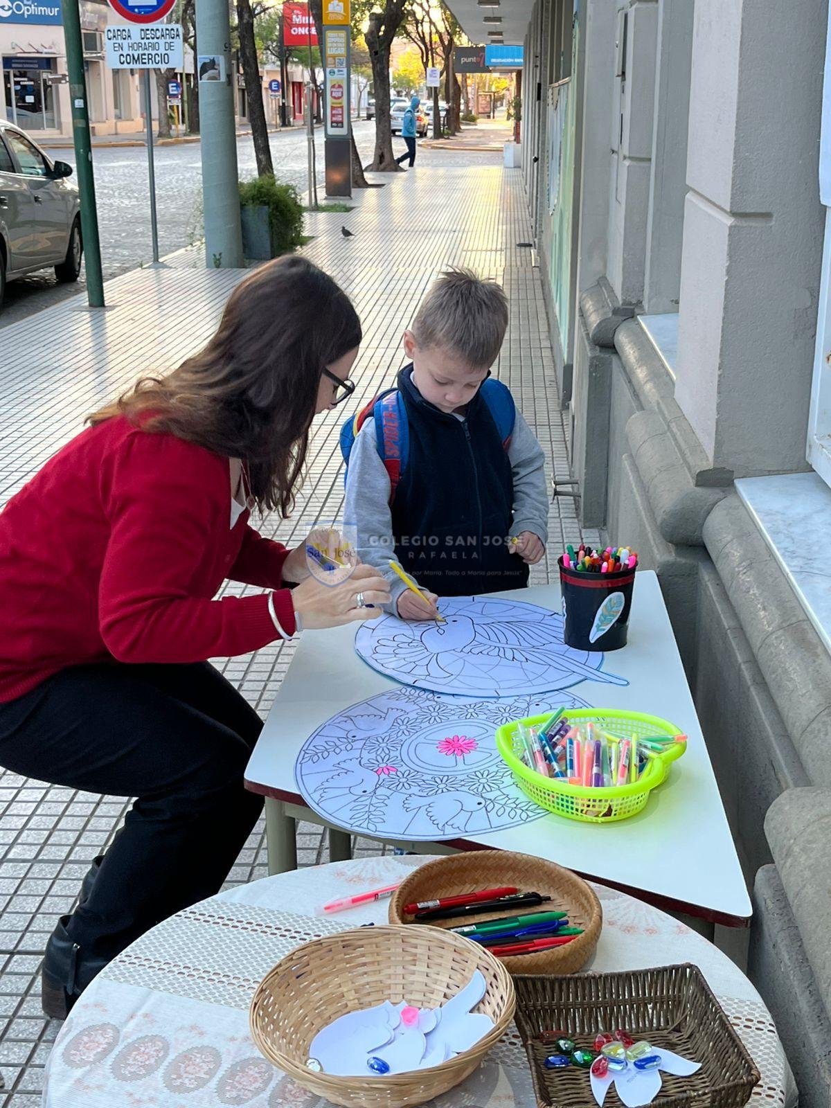 Junto a las familias al comienzo de la jornada decoraron grandes mandalas y escribieron mensajes de paz que fueron enviados a otras instituciones de la ciudad.