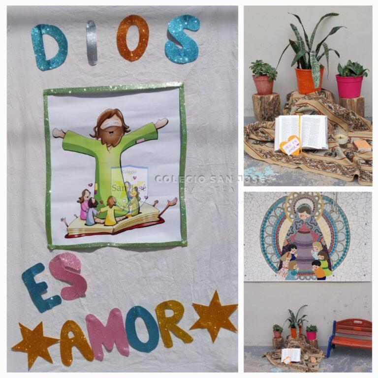 Conversamos sobre las diferentes clases de biblias, que algunas son grandes y otras chiquitas, que unas tienen solo palabras y otras también tienen dibujos. Todas ellas son biblias, son la Palabra viva de Dios que quiere habitar en nuestro corazón. Una Palabra que nos llena de alegría, que nos dice por ejemplo que «Dios es amor» o «Dios es la luz».