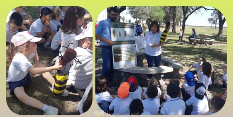 En el campo de deportes las salas de 5 años, recibieron la visita del personal del INTA, que nos contaron sobre su proyecto «Mundo Miel». Nos contaron y explicaron sobre el trabajo del apicultor, el cuidado y la importancia de las abejas para el medio ambiente para una alimentación saludable del ser humano.