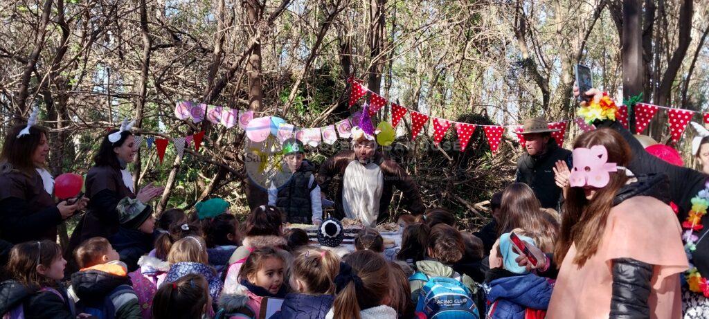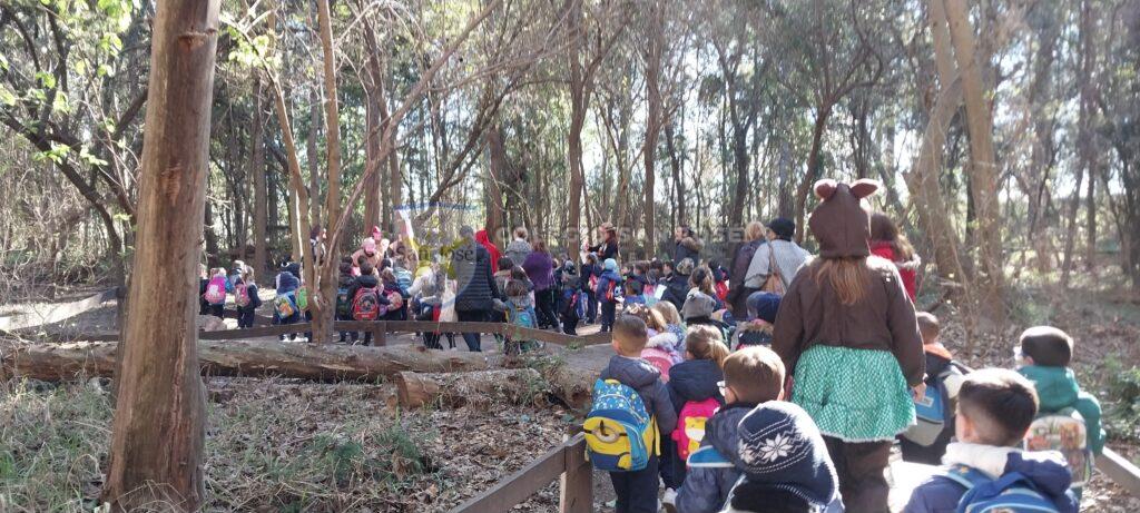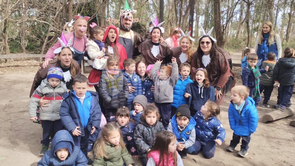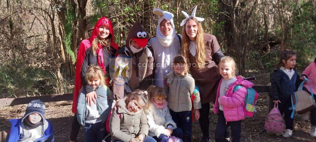 Fue cuando descubrimos que debíamos ir a buscarlo al bosquecito de Besaccia. Recorriendo el sendero, que nos invitaba a jugar al ¿lobo está?, aparecieron más personajes de cuentos que se sumaron en la búsqueda del famoso lobo.