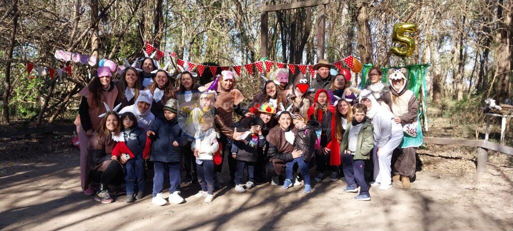 Para nuestra sorpresa encontramos al lobo… él estaba cocinando y esperándonos con otros animalitos en el medio del bosque. ¡Es que era su fiesta de cumpleaños y él solo quería que todos lo acompañemos en el festejo!!