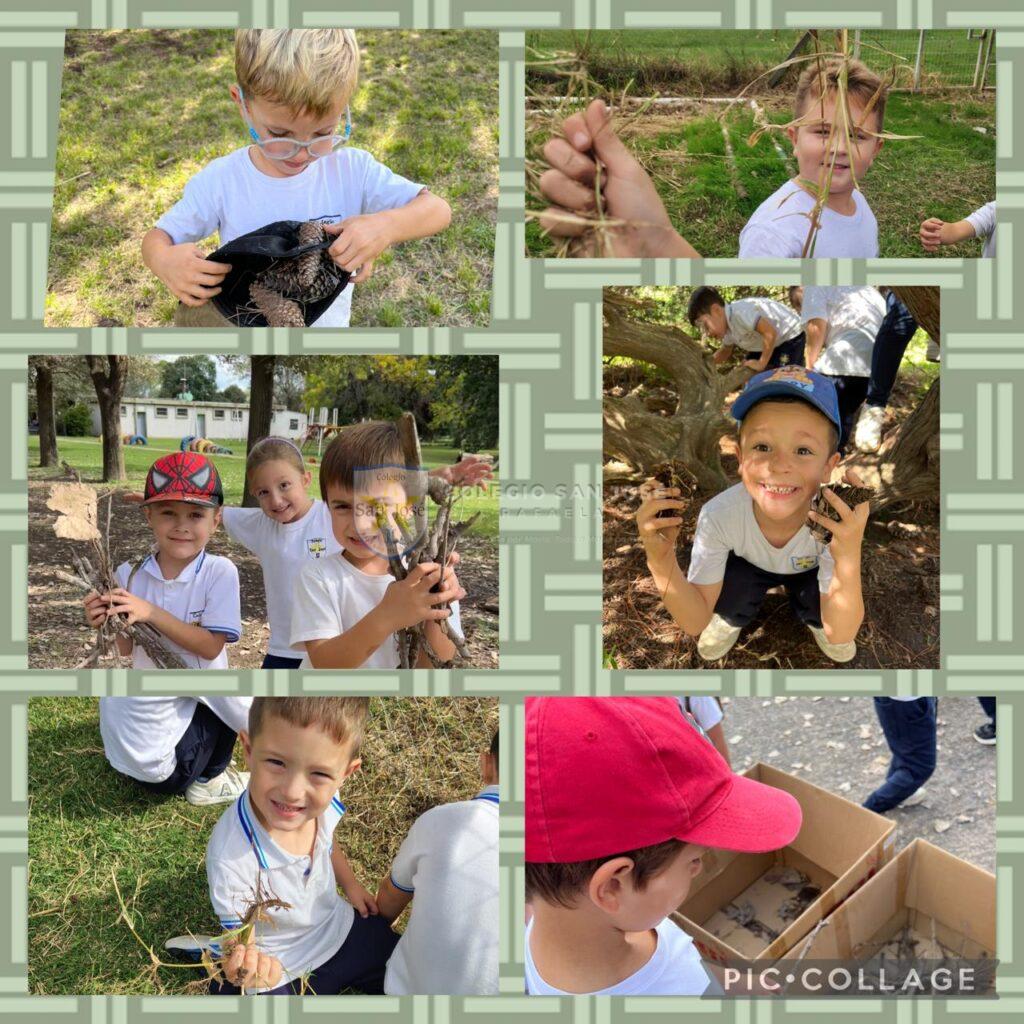 Este año los mismos funcionan en el campo de deportes en contacto con la naturaleza aprovechando lo que esta nos brinda. Juntamos varios tesoros naturales, los clasificamos y con ellos realizamos obras de arte, actividades manuales, matemáticas y también trabajamos la huerta. ¡Cuántos tesoros descubrí y cuánto me divertí!