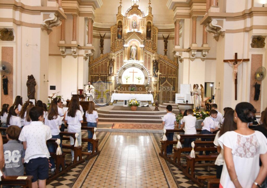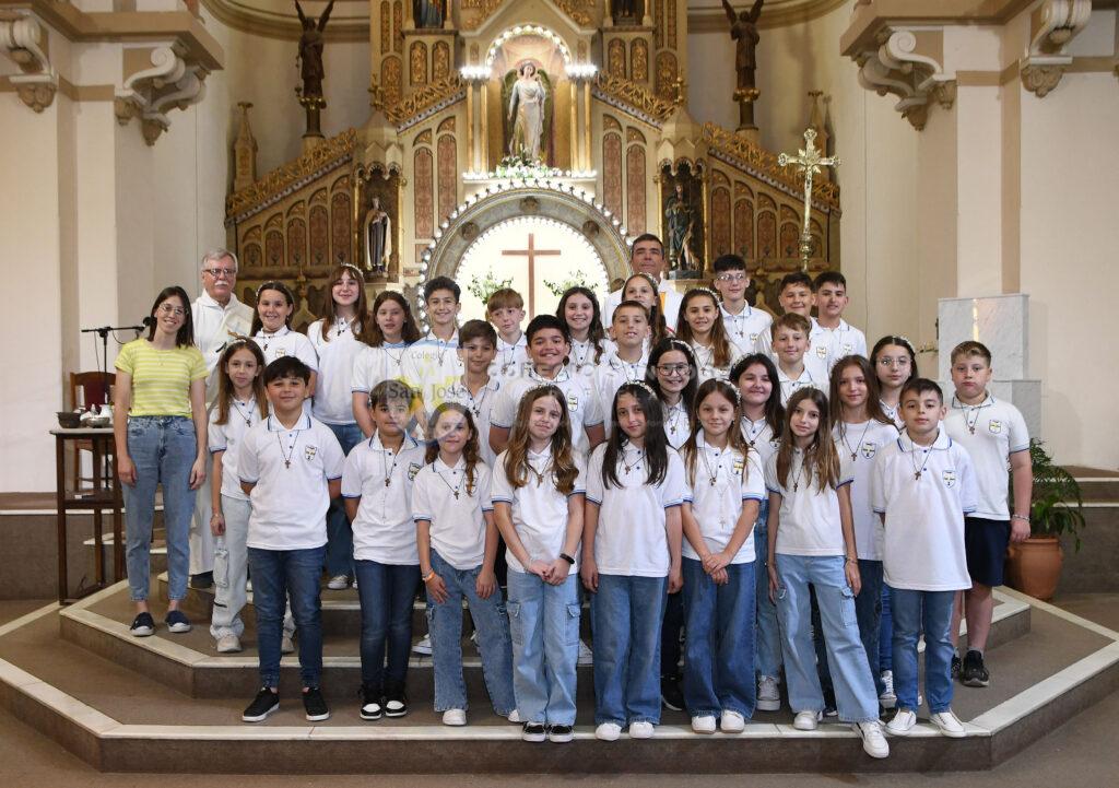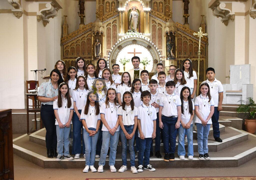 Como comunidad compartimos con mucha felicidad que los alumnos de quinto grado, el sábado 28 de octubre recibieron a Jesús Eucaristía por primera vez. Fue un día de muchas emociones compartidas, sobre todo con sus familias, quienes los acompañaron de modo especial en la Catequesis familiar a lo largo de este año.